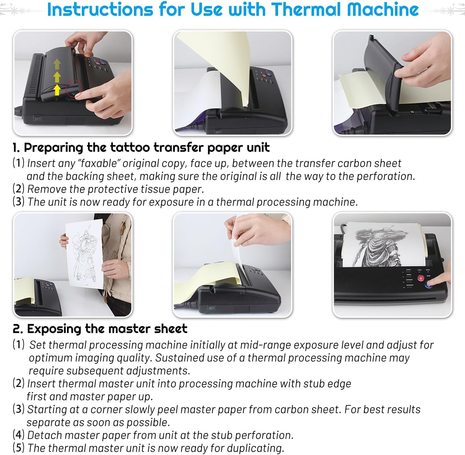 Each sheet features a smooth surface that ensures easy application of your designs, allowing for crisp and clear transfers onto the skin. The Cridoz Tattoo Transfer Paper is compatible with thermal printers and can also be used for hand-drawn designs, making it versatile for any tattooing technique.